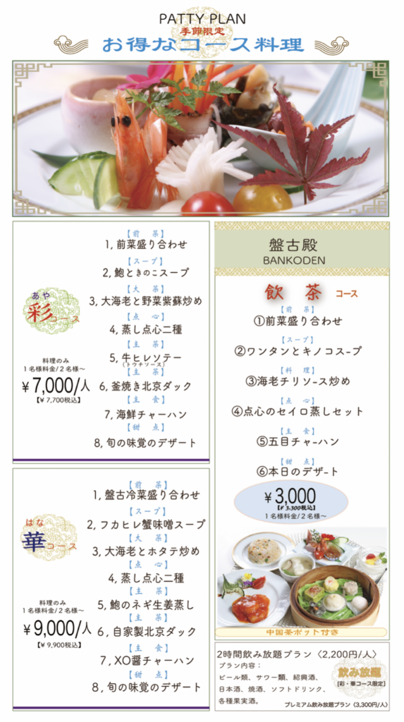 4. ■◇■ 期間限定:季節の特別コース料理 《2名様より承ります》■◇■ 2025年08月31日(日)まで  中国料理 盤古殿 新横浜プリンスホテル店
